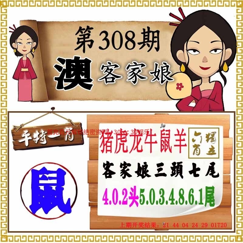 | 307期:七肖 | 鼠鸡牛虎蛇狗猴 | 开:狗20 |